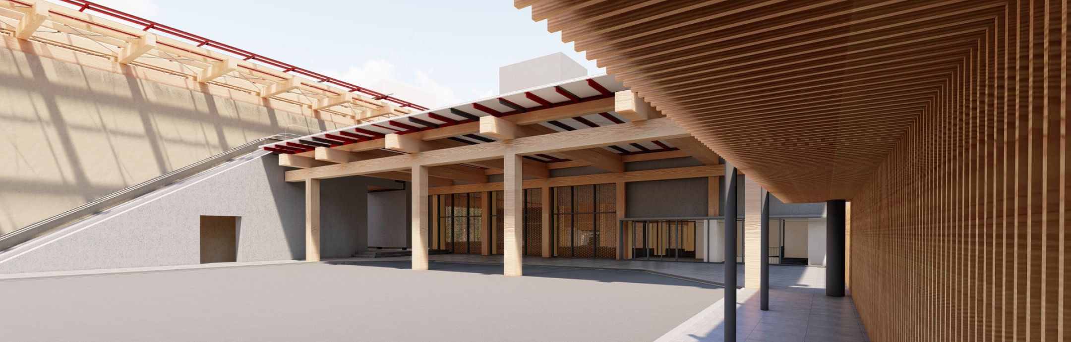 2022年8月に開催された「HOSTTOWN FESTIVAL –GO TO 2025-」においてイベント開催時の案内板やディスプレイ・装飾の素材に廃材を利用しました。また、再生可能なアイテムを使用し、イベント全体を通し、ディスプレイ・装飾に関する廃棄物をゼロに抑え、廃棄物量を最小限にとどめる取組みをしています。